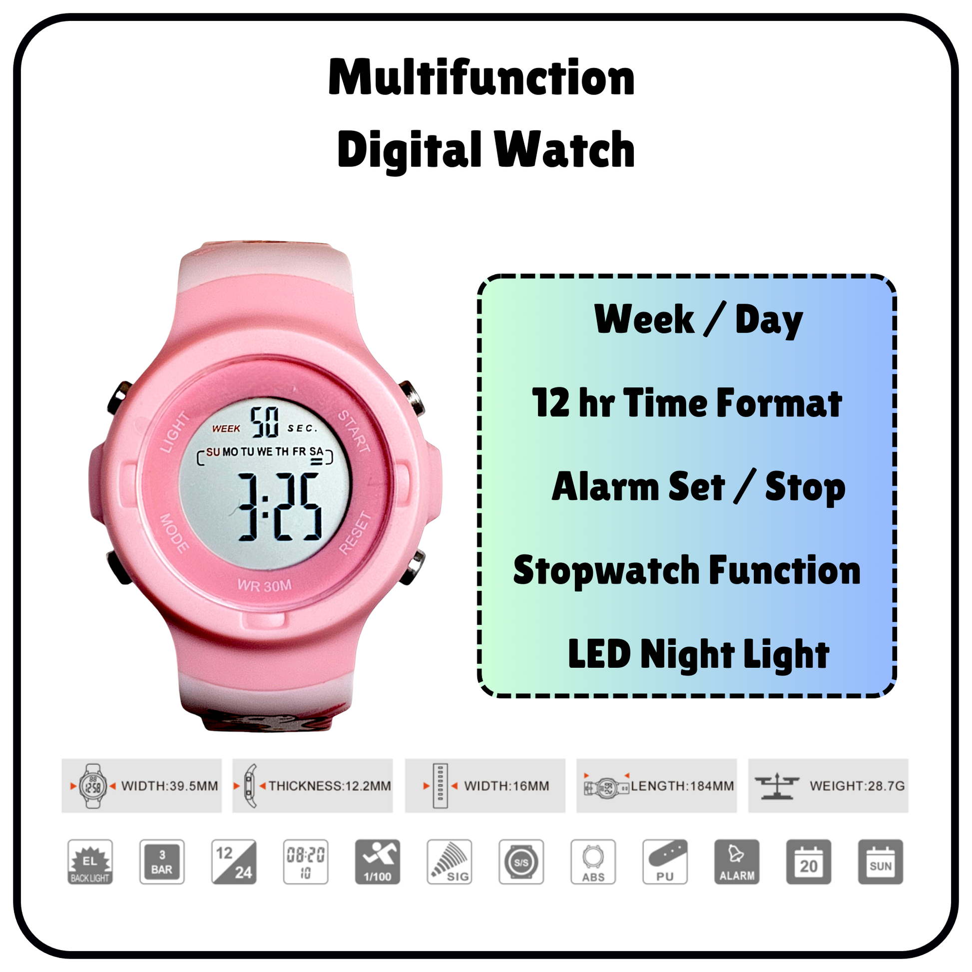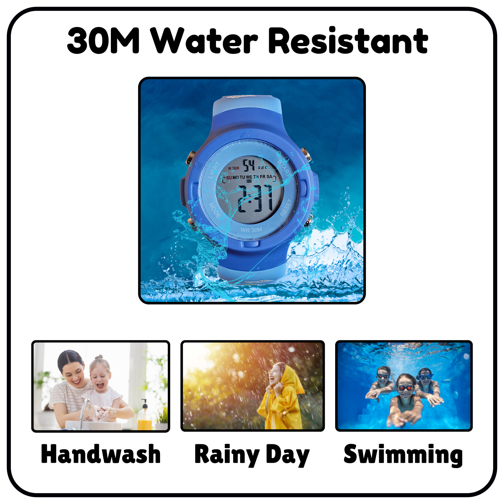 Hooper Kids Digital Sports LED Wrist Watch Boys Girls 5-12 Years Waterproof Multifunction Alarm Stopwatch Backlight Durable Strap Outdoor Casual Wear