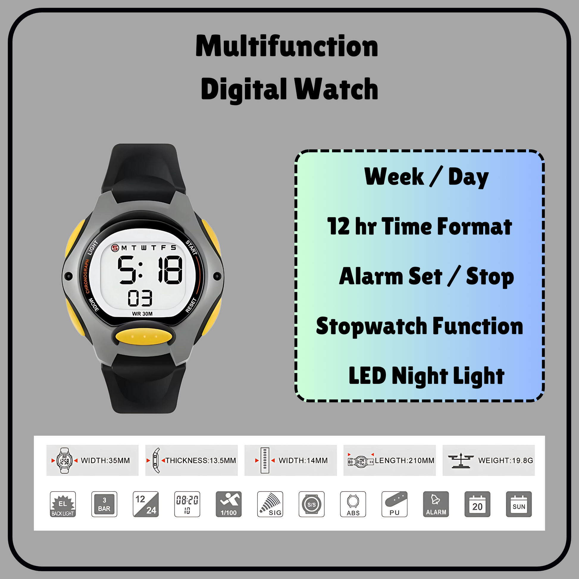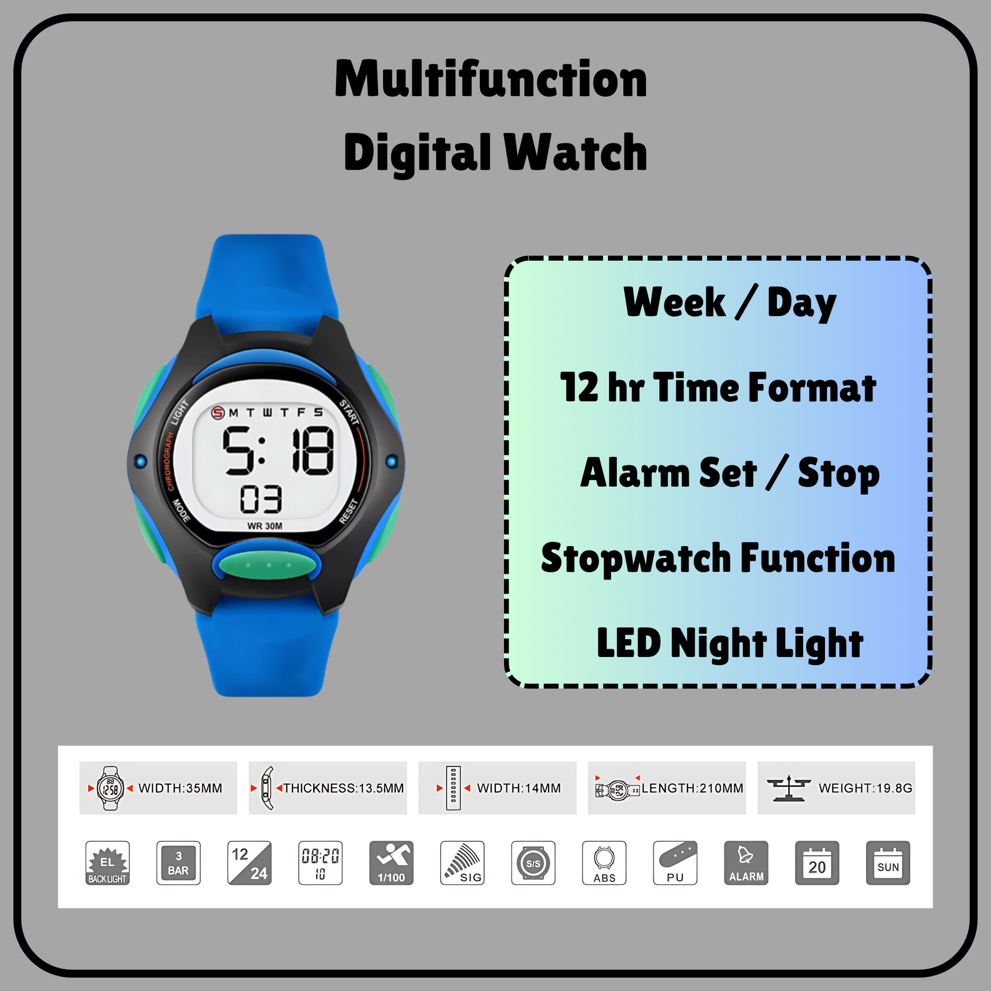 - β Multifunctional & Stylish β This digital sports watch features alarm, stopwatch, EL backlight, date, and week display, making it perfect for everyday use and outdoor activities.