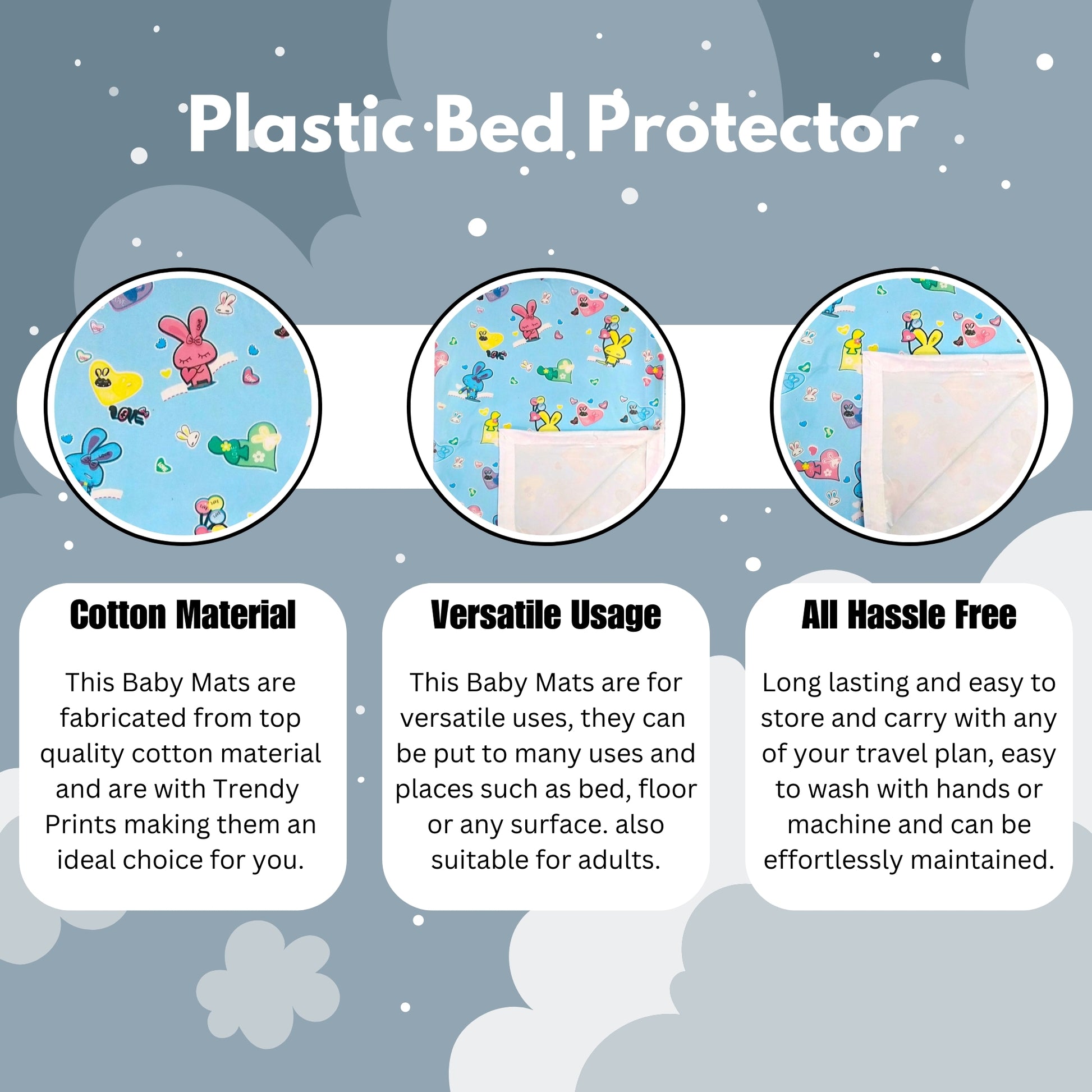 Hooper Plastic Baby Bed-Sheet | Wetting Protector Sheet | Mattress Sheet for Baby | Toddler Bed-Sheet | Thin, Printed Tiny Animal Pattern, Washable, Protects from Wetness, Large