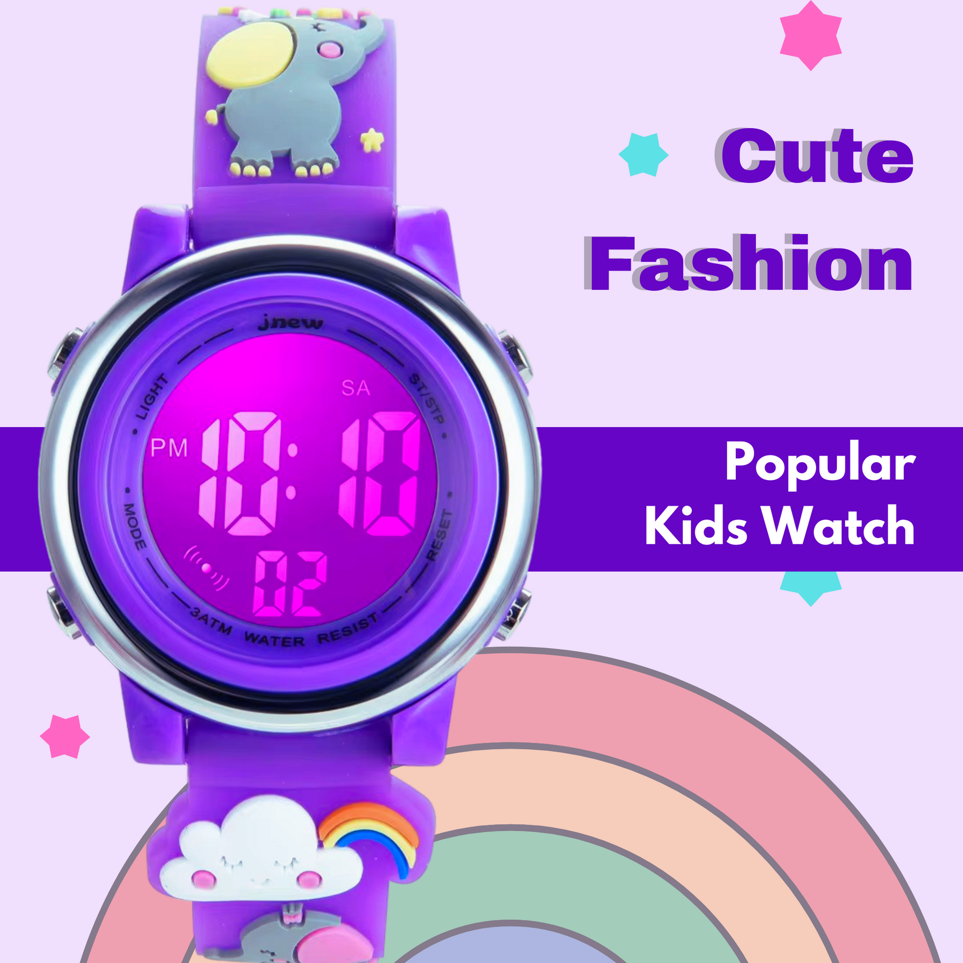 Hooper Unicorn 3D Cute Watches for Girls, Elephant Purple
