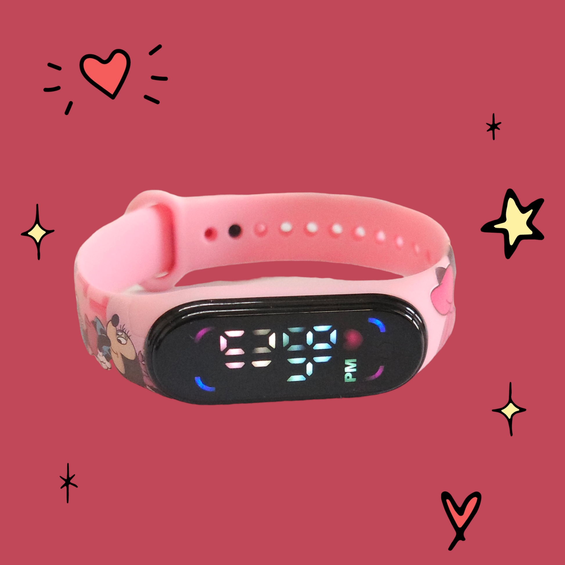 Introduce a playful and versatile collection for kids who love their favorite characters. This watch is perfect for any child who wants to add a touch of fun to their look. Our 21+ unique character options include popular themes that kids adore, like superheroes, princesses, and more! Each watch is designed with a colorful strap, LED display, and durable materials to keep up with active kids.