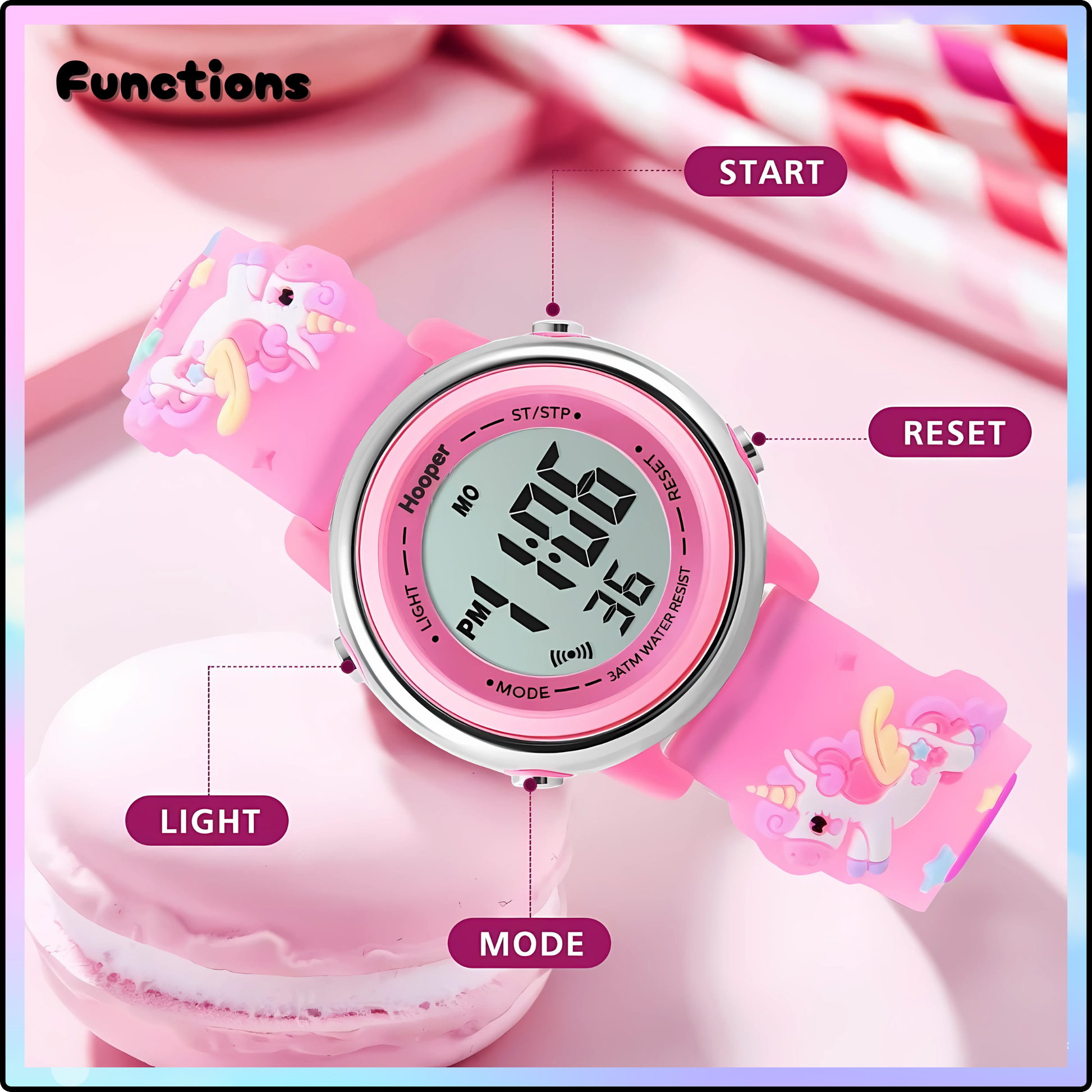 Hooper Unicorn 3D Cute Watches for Girls, Pink