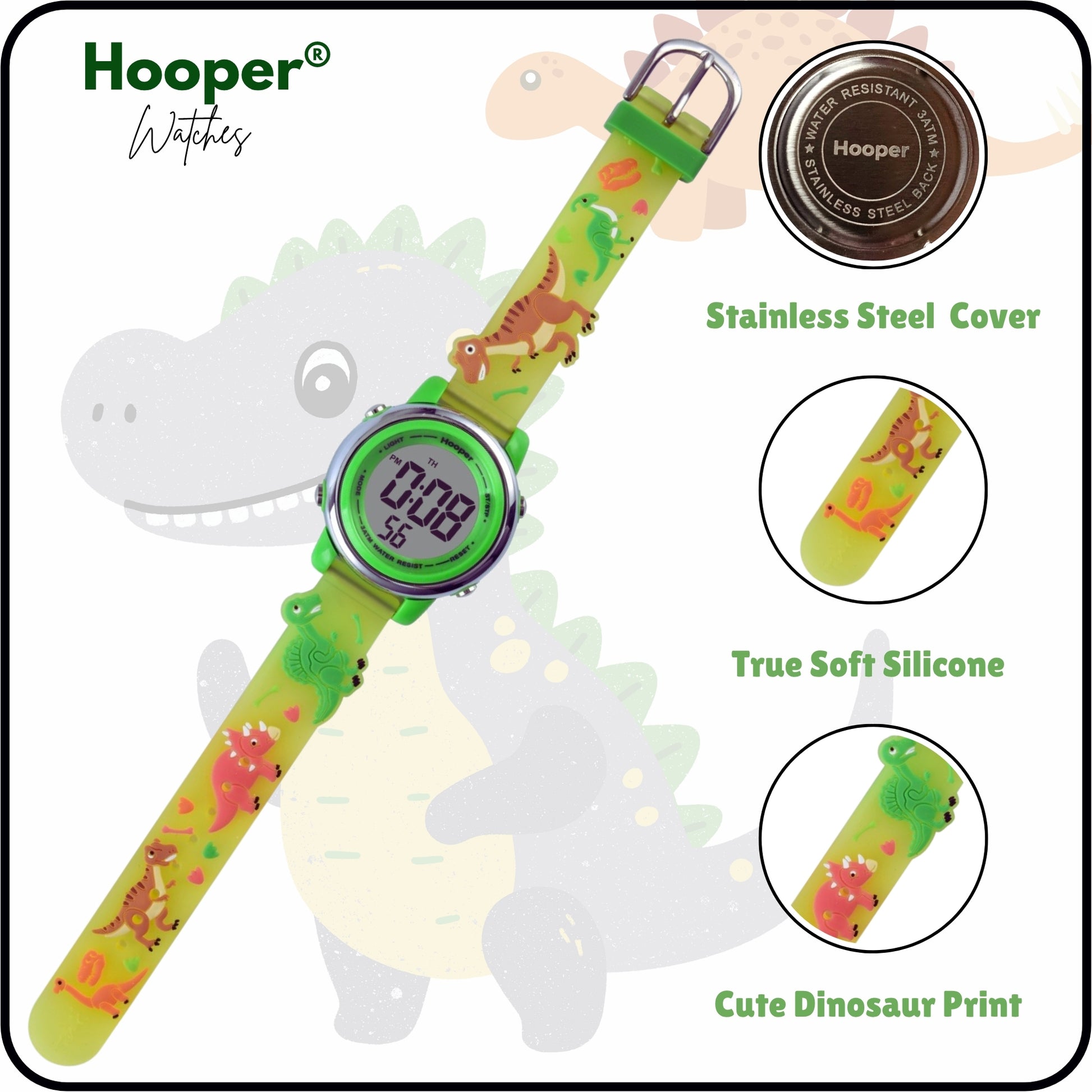 Hooper Premium 3D Watches for Boys – Dinosaur Green